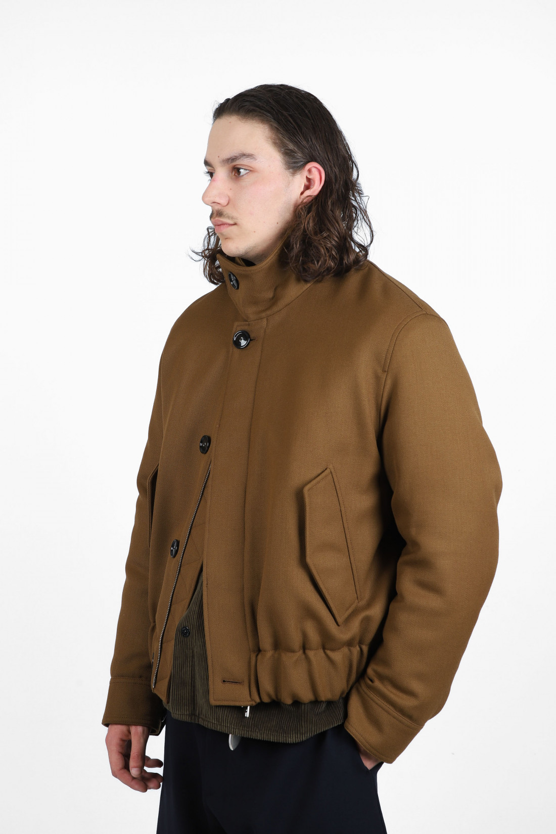 Doté d’un col montant fermé par des boutons en corne à œillet métal, il arbore une fermeture zippée double en métal nickel avec tirette gravée "ami", signature subtile de la maison. Les poignets ajustables, également finis par des boutons en corne, permettent un ajustement personnalisé.