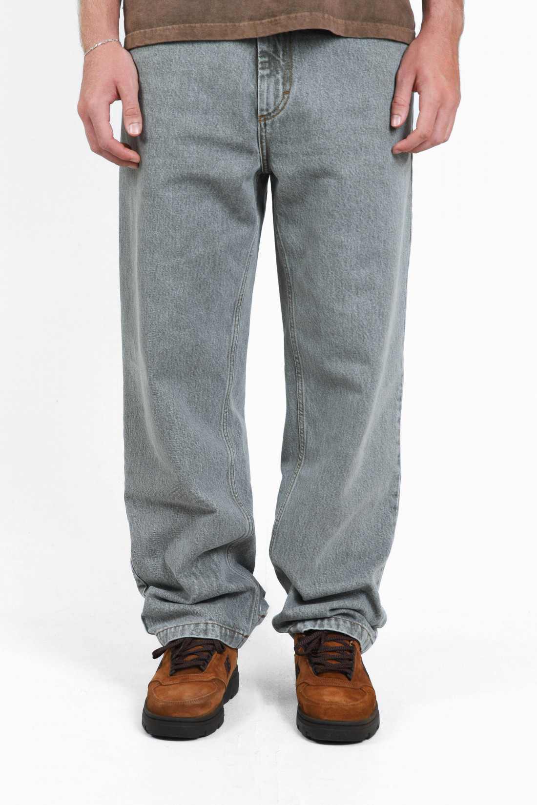 Le 93! Denim Pants de Polar Skate Co. incarne l'esthétique skate des années 90 avec une touche contemporaine. Confectionné en denim 100 % coton de 435 g/m², ce pantalon offre une coupe semi-baggy avec des jambes droites, assurant confort et liberté de mouvement. Le coloris Eucalyptus apporte une allure vintage, renforcée par un lavage à la pierre pour un aspect usé authentique.